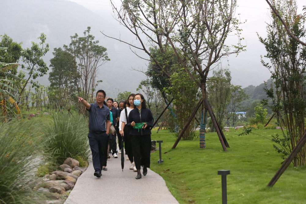 在大地公园景观步道,大家一路前行,欣赏盛开的百花,感受和煦的清风。李总向客人们详细介绍了项目景观的设计理念,花卉苗木的种类和特点等情况。